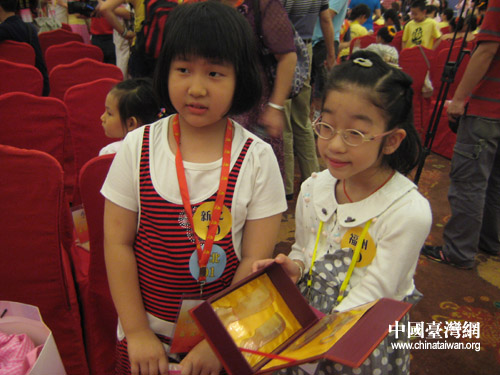 來(lái)自福州和新北的小朋友進(jìn)行結(jié)對(duì)儀式,并交換精心準(zhǔn)備好的禮物。(中國(guó)臺(tái)灣網(wǎng) 李丹 攝)