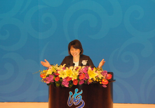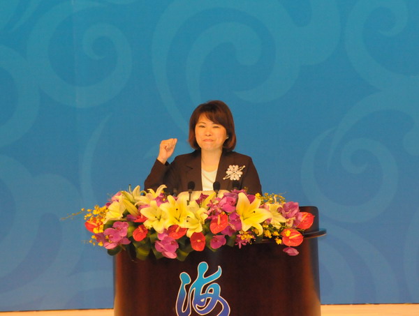 中國國民黨副主席黃敏惠女士在論壇大會上發(fā)言(新華網(wǎng) 陳杰攝)