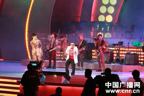 泰迪羅賓、鐘鎮(zhèn)濤、太極樂(lè)隊(duì)、黃丹怡、Mrs和鐘懿聯(lián)袂演出搖滾歌曲串燒。(中廣網(wǎng)記者何偉奇 杜煒 攝)