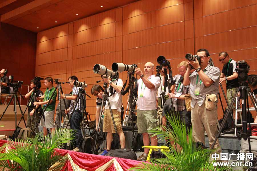 香港特別行政區(qū)第四屆政府就職典禮即將開始 各路媒體正在緊張忙碌。(中廣網(wǎng)記者 陳鐘 攝)