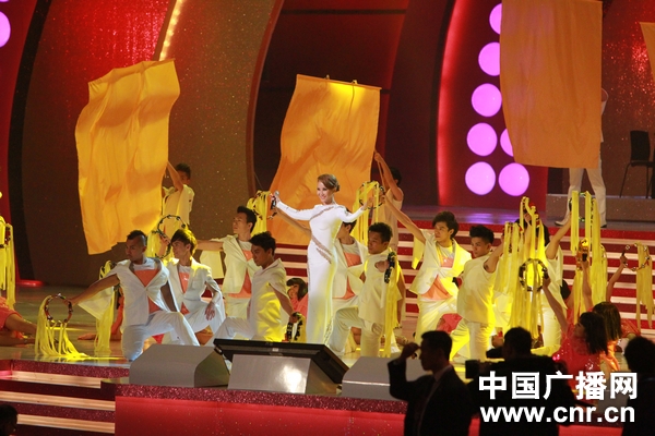 華人歌手李玟演繹歌曲串燒《自己》、《我們的天空》、《千個太陽》。(中廣網(wǎng)記者何偉奇 杜煒 攝)