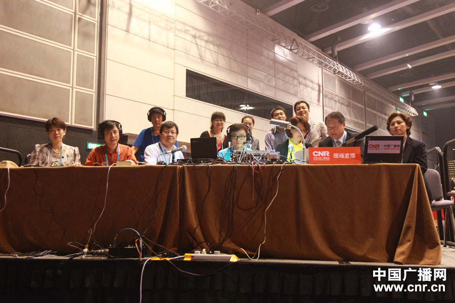 中央臺(tái)前方報(bào)道組做慶祝香港回歸十五周年文藝晚會(huì)直播前最后準(zhǔn)備(中廣網(wǎng)記者陳鐘 攝)