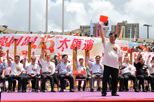 。ㄖ醒肱_(tái) 杜煒)喜迎香港回歸祖國(guó)15周年,由社會(huì)各界團(tuán)體組成的香港各界慶典委員會(huì)7月1日在香港大球場(chǎng)舉辦“新起點(diǎn) 齊向前 慶回歸15周年大匯演”活動(dòng),全場(chǎng)4萬名觀眾與全港市民一道,歡慶香港回歸祖國(guó)的歡樂。