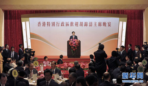 6月30日,國(guó)家主席胡錦濤出席香港特別行政區(qū)政府歡迎晚宴并講話(huà)。 新華社記者謝環(huán)馳攝