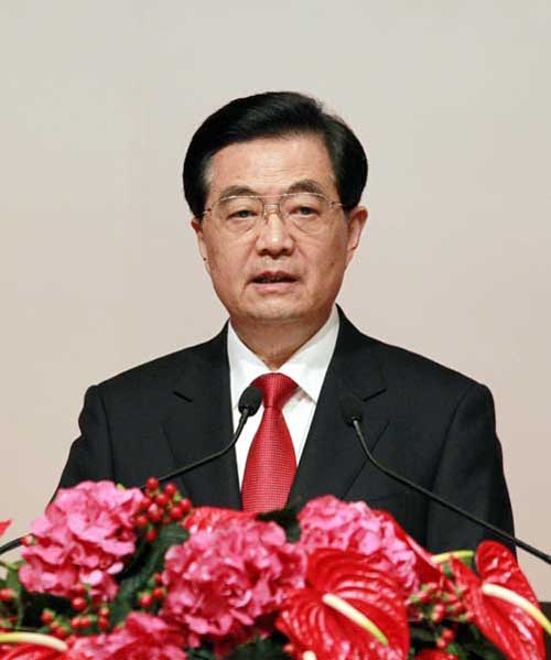 6月30日,國(guó)家主席胡錦濤出席香港特別行政區(qū)政府歡迎晚宴并講話。新華社記者鞠鵬攝
