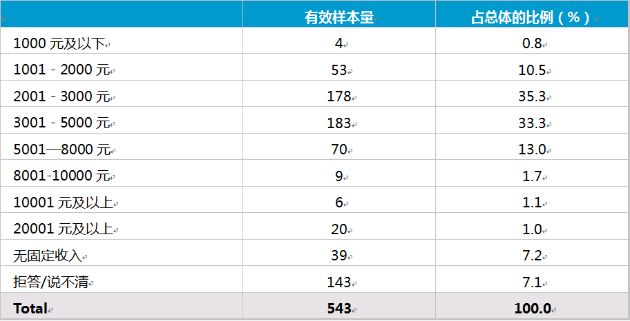 附表 受訪對象個人月均收入分布