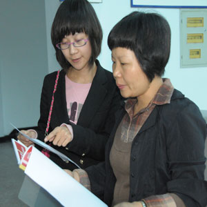 ▲鄭標菊(右)到農村檢查指導“廉潔村”創(chuàng)建工作。