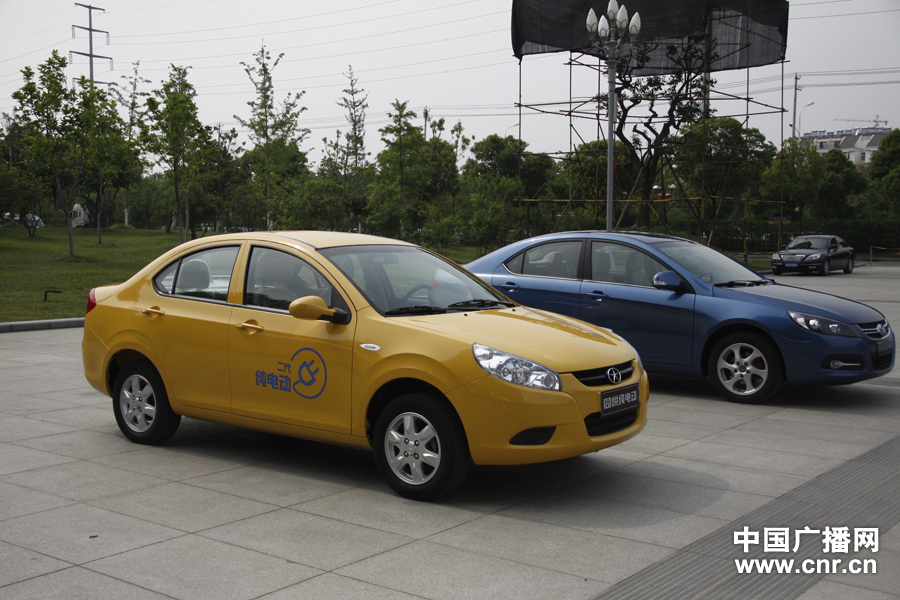 5月28日中央臺(tái)《傾聽(tīng)安徽》報(bào)道組來(lái)到安徽江淮汽車股份有限公司采訪,記者趙子忠實(shí)地了解感受新能源汽車的發(fā)展和未來(lái)。圖為公司大樓前的廣場(chǎng)上展示的兩輛第二代純電動(dòng)新能源車(中廣網(wǎng)記者劉夢(mèng) 攝)