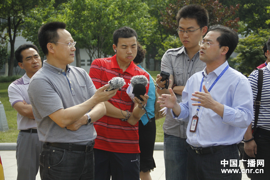 5月28日中央臺《傾聽安徽》報道組來到安徽江淮汽車股份有限公司采訪,記者趙子忠實地了解感受新能源汽車的發(fā)展和未來。圖為記者現(xiàn)場采訪江淮汽車副總經(jīng)理嚴(yán)剛(中廣網(wǎng)記者劉夢 攝)