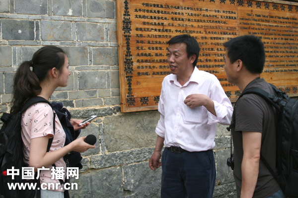 中央臺(tái)“走轉(zhuǎn)改”系列報(bào)道“傾聽(tīng)貴州”采訪團(tuán)成員,中央臺(tái)中國(guó)之聲總監(jiān)蔡小林(中)現(xiàn)場(chǎng)部署報(bào)道方案。