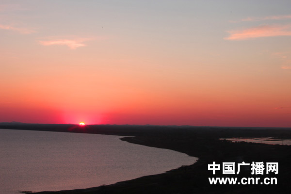 夕陽中的向海自然保護(hù)區(qū)水庫(記者周平 攝)