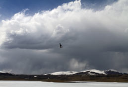 經(jīng)常在青藏高原工作,見到野生動物對我而言并不是什么新的事情,但是這次去麥地卡的途中,在同一區(qū)域內(nèi)見到多種不同種類的野生動物卻是頭一次。赤麻鴨、斑頭雁在去往麥地卡的途中隨處可見。麥地卡濕地內(nèi)縱橫遍布著108個大小湖波,湖面上不時會飛過各種色彩艷麗、體型矯健,但是卻叫不上名字的水鳥。在這里我第一次知道了鵟這種高原猛禽。大開眼界,可以說是這次到麥地卡采訪的最初感受。