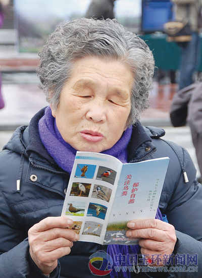 今年81歲的鄭學(xué)香老人,在活動現(xiàn)場領(lǐng)取了一份宣傳資料后,坐在公園的木凳上認(rèn)真翻看起《保護(hù)自然,關(guān)注鳥類》手冊!斑@個冊子蠻好的,野生動物是自然的東西,我們不能去破壞。如果有人要打鳥類等動物,我們就應(yīng)該去阻止他!