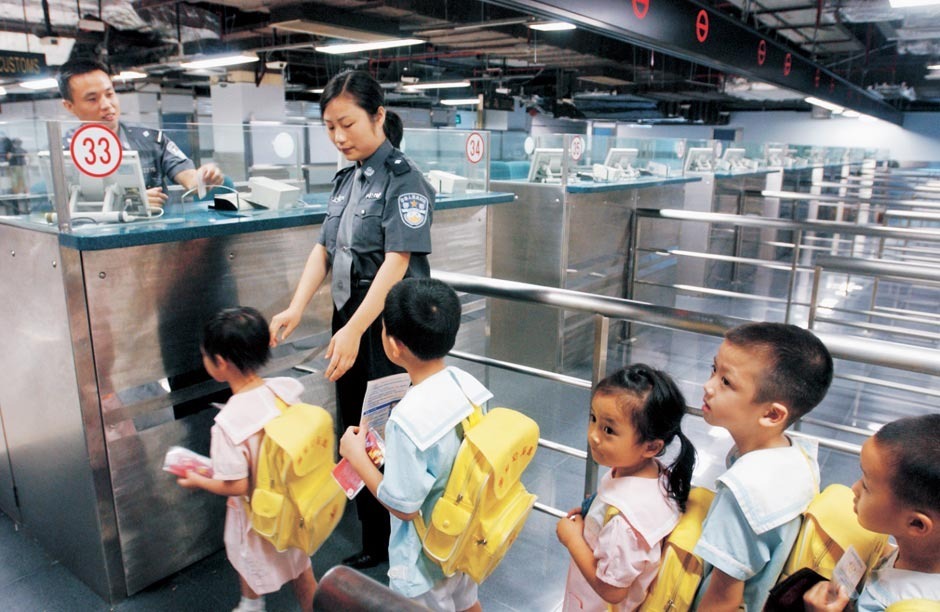 2003年,過(guò)境讀書(shū)的深圳孩子通過(guò)羅湖口岸。陳遠(yuǎn)忠攝。