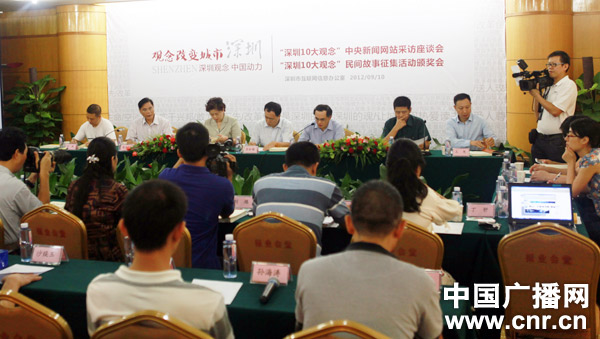 中廣網(wǎng)深圳9月10日消息(記者孫松濤 李強) 上午,一場別開生面的座談會在深圳報業(yè)集團舉行,由人民網(wǎng)、新華網(wǎng)、光明網(wǎng)、中國經(jīng)濟網(wǎng)、中國新聞網(wǎng)、中國廣播網(wǎng)、中青在線、中國日報網(wǎng)、中國新聞出版網(wǎng)等9家中央新聞網(wǎng)站組成的采訪團與“深圳十大觀念”評選活動的發(fā)起與組織者展開對話,共同分享評選活動背后的故事及“深圳觀念”特有的現(xiàn)實意義。