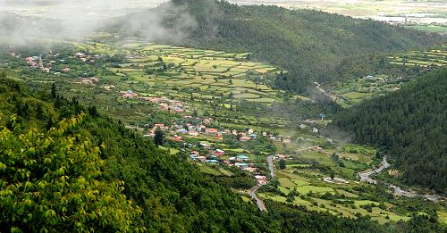 青山綠樹環(huán)抱的西藏林芝縣扎康村安居房(7月3日攝)。