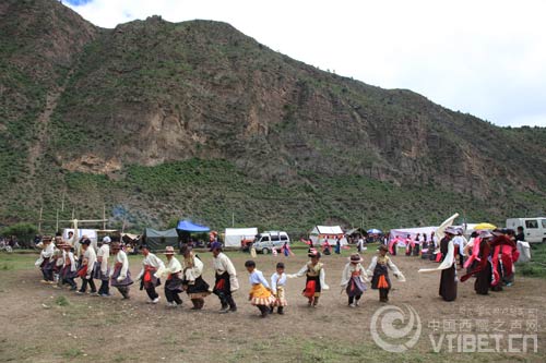 左貢縣旺達鎮(zhèn)列達村村民耍壩子時的重要項目:跳鍋莊。記者 曾曉東/攝