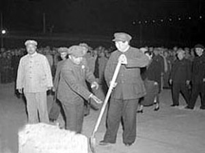 1949年:毛主席等黨和國(guó)家領(lǐng)導(dǎo)人為人民英雄紀(jì)念碑親奠基石