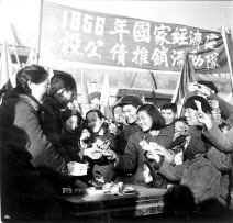 群眾踴躍購買公債,支持國家建設。(1956年)
