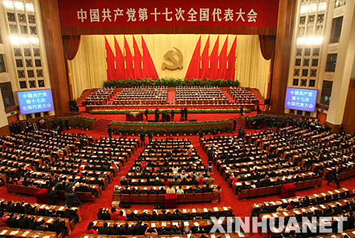中國共產(chǎn)黨第十七次全國代表大會 2007年10月15日,中國共產(chǎn)黨第十七次全國代表大會在北京人民大會堂隆重開幕。胡錦濤代表第十六屆中央委員會作報告。胡錦濤在會上提出,高舉中國特色社會主義偉大旗幟,為奪取全面建設(shè)小康社會新勝利而奮斗。