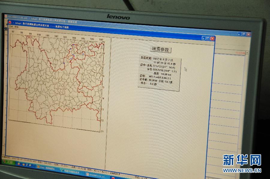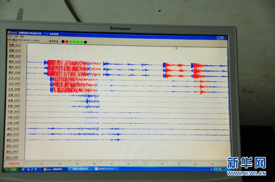 9月7日上午11時19分,在云南彝良防災減災局拍攝的新接收到的5.7級地震相關數(shù)據(jù)。