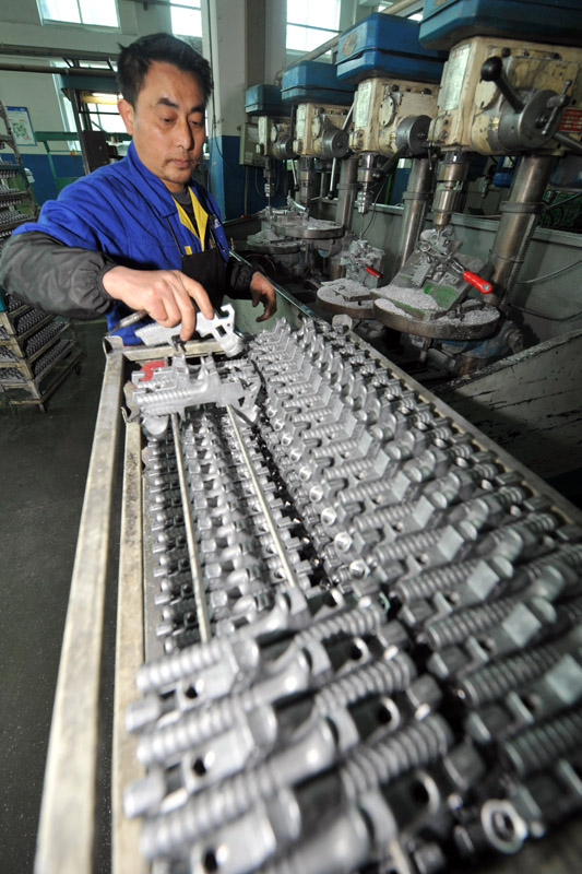 浙江省溫嶺市一家氣動(dòng)工具廠的工人在制造出口的氣動(dòng)工具零件(2月11日攝)。