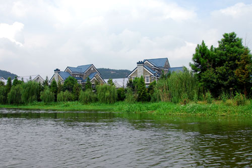 湖邊百姓修建的別致房屋掩映在蘆葦從中