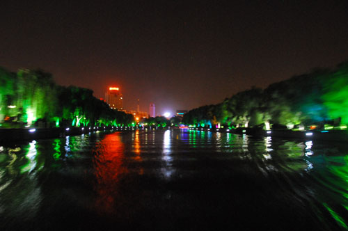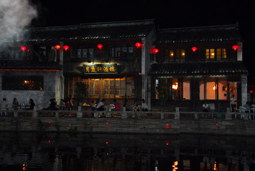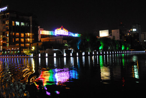 運河兩旁充滿江南水鄉(xiāng)情調(diào)的街景與享受夜生活的嘉興市民