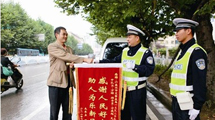 當(dāng)他走到水西路十字交叉路口處時(shí),看到一輛皮卡車停放在路邊,幾名交警圍在車旁正在撥打電話。為了表示感謝,昨日下午,陳洪做了一面印有“感謝人民好交警 助人為樂新風(fēng)尚”的錦旗送到了萬錦的手中,于是便出現(xiàn)了文章開頭的一幕。
