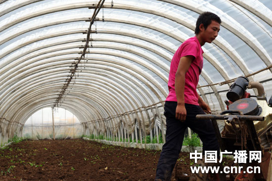 農(nóng)民在大棚里耕作(中廣網(wǎng)記者路林強(qiáng) 攝)