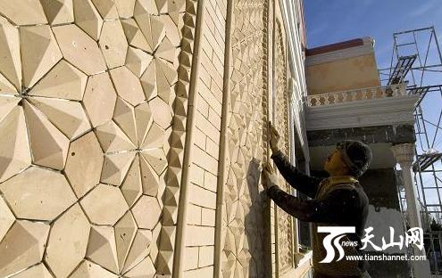 2010年11月13日,新疆澤普縣八鄉(xiāng)三村富民安居工程示范點的工人在為新修建抗震安居房修整具有新疆少數(shù)民族風(fēng)格的墻面。(資料圖片)
