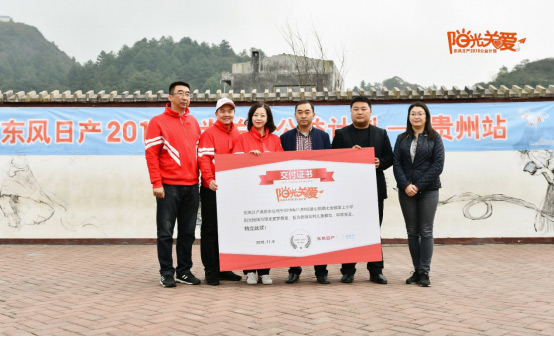 2018年,東風(fēng)日產(chǎn)攜手壹基金,啟動陽光關(guān)愛公益計(jì)劃,為14所學(xué)校捐建陽光操場、改造陽光童夢教室,并組織陽光小記者團(tuán),帶領(lǐng)山村兒童走出大山,拓展視野。同時(shí),東風(fēng)日產(chǎn)聯(lián)動經(jīng)銷商、全國各地媒體及志愿者組成愛心團(tuán)隊(duì),前往受扶持小學(xué)進(jìn)行探訪,為孩子們傳遞陽光關(guān)愛。