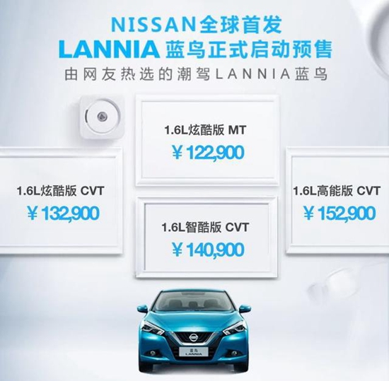 東風日產藍鳥預售價格公布 12.29萬起售