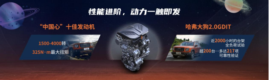 哈弗大狗2.0T四驅(qū)版搭載獲得2020“中國(guó)心”十佳的2.0GDIT發(fā)動(dòng)機(jī),它擁有一系列業(yè)內(nèi)領(lǐng)先優(yōu)勢(shì)——高達(dá)38.3%的行業(yè)頂級(jí)熱效率,滿足國(guó)6b和歐美最嚴(yán)格標(biāo)準(zhǔn)的環(huán)保排放,減重10%的輕量化指標(biāo),以及同級(jí)領(lǐng)先的NVH噪音控制能力。該發(fā)動(dòng)機(jī)還針對(duì)哈弗大狗的應(yīng)用場(chǎng)景進(jìn)行了專屬調(diào)教,低速越野工況下,1500~4000轉(zhuǎn)可爆發(fā)出325N·m的強(qiáng)大扭矩,“路遇不平即可輕松脫困,縱橫溝壑也能一馬平川”。而在6000-6300轉(zhuǎn)的高速工況下,車輛可持續(xù)輸出155KW的最大功率,將高效率低排放的優(yōu)勢(shì)發(fā)揮至極致,讓用戶每一次低速脫困或是高速超車,都能游刃有余、信心十足。