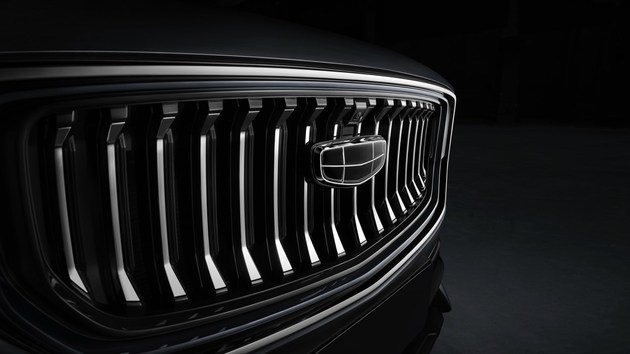從曝光的車型圖來看,新車前臉設(shè)計給人硬朗的視覺體驗,直瀑式內(nèi)凹前格柵,搭配雙排三段式光源的前大燈,突顯霸氣張揚的氣質(zhì)。此外,新車采用的吉利黑標(biāo)logo,提升了品牌辨識度與整車的豪華感。