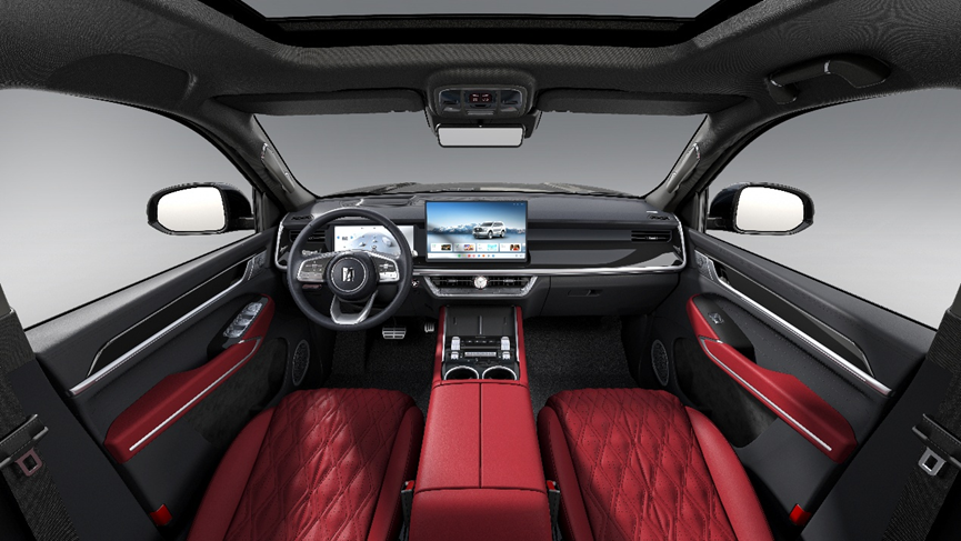 此外,新車內(nèi)飾基于“黑甲赤韻”的設(shè)計(jì),采用定制深紅色調(diào)的Nappa真皮座椅搭配菱格絎縫工藝,與全黑頂棚形成視覺反差。