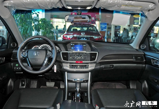 內(nèi)飾上,雅閣的內(nèi)飾造型與外形沉穩(wěn)的風格一脈相承,做工精良,在同級別車型中表現(xiàn)出色。中控臺布局合理,層次感很強,銀色的裝飾把不同的區(qū)域劃分的很清楚;中控臺整體以黑色調(diào)為主,輔以銀色裝飾條和木紋裝飾條;中控臺雙液晶顯示屏很顯高檔,科技感很強,顯示的信息豐富,觸屏操作簡潔方便;在不同車型上座椅有黑色和象牙白兩種顏色可以選擇,材質全部為皮質座椅,很顯高檔,但質地較硬;四輻方向盤尺寸較小,握感很好,多功能按鍵布局清晰合理。