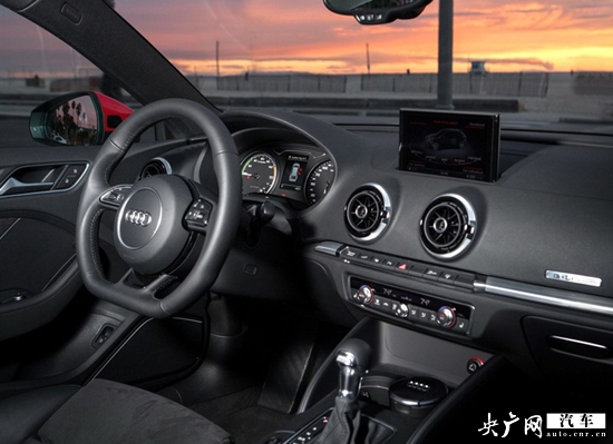 內(nèi)飾方面,奧迪A3中控臺(tái)設(shè)計(jì)的簡(jiǎn)潔明了,中控臺(tái)為橫向長(zhǎng)條造型,四個(gè)圓形出風(fēng)口很搶眼;黑色內(nèi)飾配合大量銀色裝飾顯得動(dòng)感十足;奧迪的方向盤(pán)一向表現(xiàn)不錯(cuò),A3的真皮方向盤(pán)大小適中,握感很好;隱藏在方向盤(pán)后面的換擋撥片,總算對(duì)得起“豪華”的價(jià)位,撥片手感細(xì)膩,操作后回彈速度也很快。
