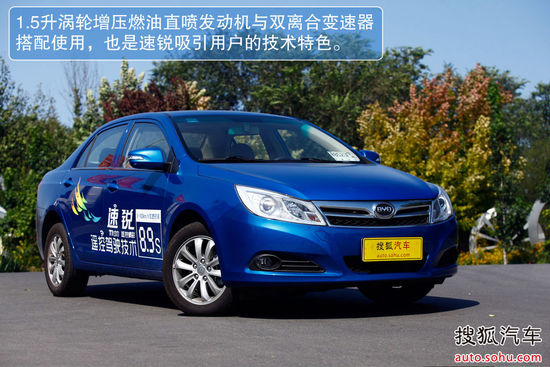 購買建議:速銳在動力性能方面,相對一般自主車型來說優(yōu)勢明顯,所以我們這次也向大家推薦速銳搭載增壓發(fā)動機(jī)的1.5TID車型,百公里8.9秒的加速表現(xiàn)不俗。除此之外,比亞迪速銳也保持了同級最豐富的配置標(biāo)桿,不但全系標(biāo)配真皮座椅、無鑰匙啟動、自動空調(diào)、多功能方向盤,更在中高配1.5T車型上,配備了前后多個安全氣囊、車身穩(wěn)定裝置、GSP導(dǎo)航、后面右側(cè)可視倒車系統(tǒng)、車載電視等等齊全功能,增壓引擎+DCT變速器的車型還具備了車外遙控汽車功能。另外,近期速銳在C-NCAP碰撞測試中,獲得了56.5分的五星評級,超越了很多合資車水準(zhǔn),在安全性方面改變了大家對自主車的傳統(tǒng)印象。