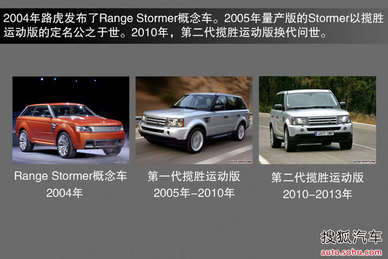 關(guān)于攬勝運(yùn)動版的故事還要從2004年開始說起,路虎首先發(fā)布了一款名為Range Stormer的概念車,一款定位于發(fā)現(xiàn)與攬勝之間的車型,而Stormer在2004年以磨砂金屬的外形以及剪刀門等概念設(shè)計(jì)最強(qiáng)烈的視覺信息就是,路虎要推出一款高性能SUV。