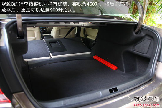 作為關(guān)注度最高的緊湊車之一,觀致3空間自然是不能忽略的,這也關(guān)系到大多數(shù)消費(fèi)者用車需求。觀致3長(zhǎng)寬高分別為4615/1839/1445mm,軸距達(dá)到2690mm。從數(shù)據(jù)來(lái)看,已經(jīng)是國(guó)內(nèi)同級(jí)別車型中排名比較靠前的位置。178cm身高體驗(yàn)者進(jìn)入車內(nèi),頭部提供兩指的空間。進(jìn)入后排,觀致3為同一個(gè)體驗(yàn)者提供了兩指左右頭部空間,腿部則擁有一拳兩指空間。觀致3行李廂開口不算大,但內(nèi)部很平整,日常行李廂容積為450升,如果全部放倒后排可以擴(kuò)展到900升。