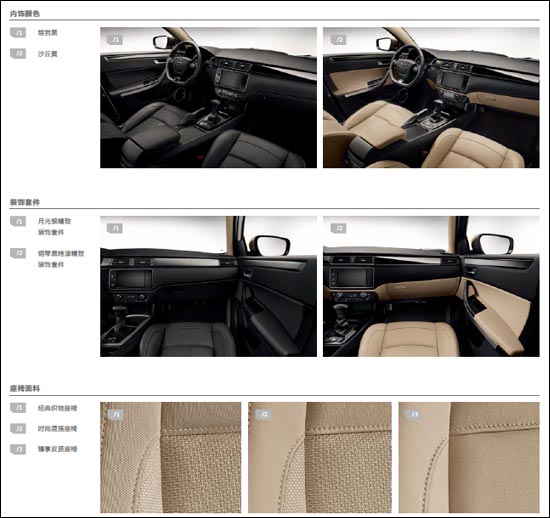 【觀致3提供2種內(nèi)飾顏色,2種裝飾套件,3種座椅面料】
