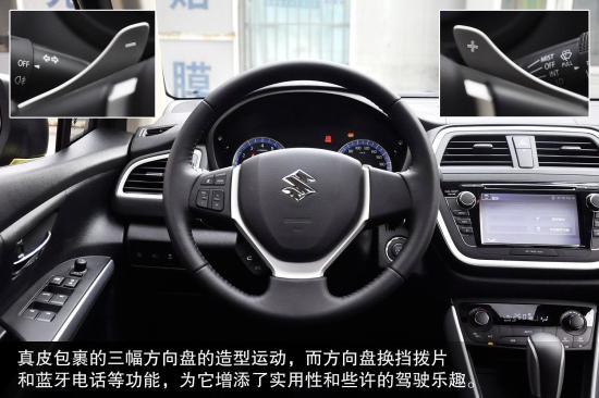 內飾部分的設計比較簡單,功能性沒有問題。全黑內飾搭配銀色裝飾條是鈴木的標準配置,突出運動基因。三幅方向盤集成有多功能鍵和換擋撥片,在同屆別SUV車型中并不常見。在配置方面,鋒馭全系標配一鍵啟動和車身穩(wěn)定控制系統(tǒng),顯得非常厚道,在精英版上還能找到導航、倒車影像、自動空調等豪華配置,特別是全景天窗,非常有吸引力。