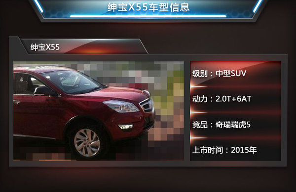 紳寶X55即此前曾被多次曝光過的C61X車型,而根據(jù)其命名方式來看,這款車的尺寸級別將比X35更大,是一款中型SUV。動力方面,紳寶X55有望搭載2.0T+6AT的組合。新車上市后的主要競爭對手為奇瑞瑞虎5,預(yù)計上市時間在2015年上半年。