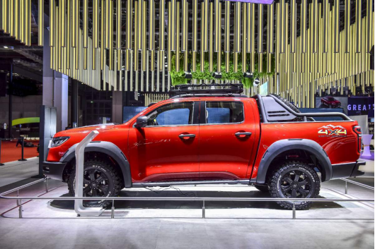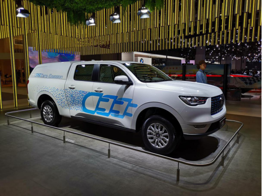這屆上海車展上,路過長城展臺的人很容易被長城全新的皮卡“長城炮”吸引!肮粜浴边@么強的名字也確實要多看上兩眼,筆者第一眼看到的是“長城炮”的商用皮卡,展臺展示的是純電動版本,車的前臉是蜂窩狀大嘴設(shè)計,后邊是原廠自帶的封閉式貨箱,續(xù)航里程500公里。