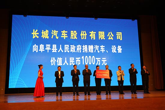 長(zhǎng)城汽車(chē)向阜平縣捐贈(zèng)價(jià)值人民幣1000萬(wàn)元的汽車(chē)及設(shè)備