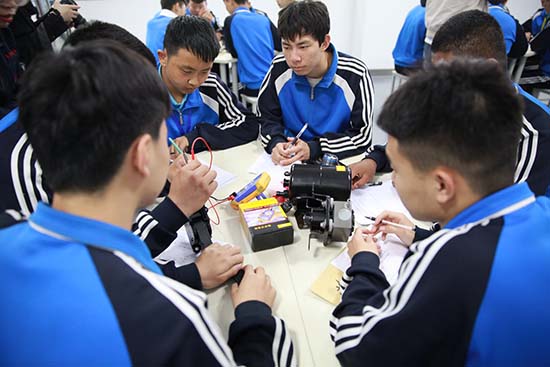 阜平縣職業(yè)教育學(xué)校學(xué)生正在學(xué)習(xí)車(chē)輛維修技術(shù)