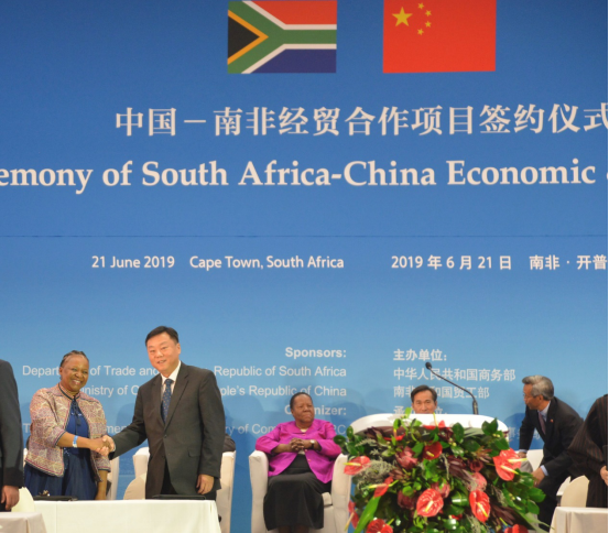 中國商務(wù)部部長助理任鴻斌,中國駐南非大使林松添,南非信息科技部部長Naledi Pando、貿(mào)工部部長Ebrahim Patel、農(nóng)業(yè)部部長Thoko Didiza等兩國政府部門和相關(guān)行業(yè)組織代表出席本次儀式,并見證此協(xié)議的簽署。