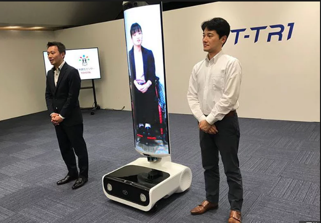 T-TR1是由豐田研究所開發(fā)的,T-TR1是一個遠程通信機器人,外形類似于一個超大的直立式吸塵器,并帶有一個垂直的大屏幕。這旨在將真人大小的視頻實時傳輸?shù)狡聊簧,讓機器人在奧運場館中漫步,從而讓人可以虛擬參與,人們還可以通過機器人頭上搭載的360度攝像頭與周圍環(huán)境進行互動。然而,目前的原型機仍需要遙控,無法自行移動。
