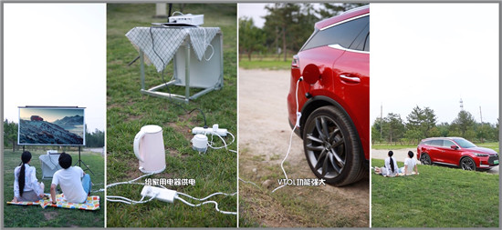 腦補一下,自駕戶外露營是很開心的事?扇羰侵荒艹砸恍┧偈呈称,難免有些煞風(fēng)景。把食材準(zhǔn)備好,將電磁爐、電烤箱架起來,而且不點火、不污染環(huán)境,背靠青山綠水,美景配佳肴,豈不美哉!這時就要看比亞迪大顯神通了。通過充電口可以反向輸出電量,比亞迪可以供車主攜帶的小型電器使用,這也就是其雙向逆變技術(shù)的“車對負載模式”,也是除了比亞迪車主,別人享受不到的福利。